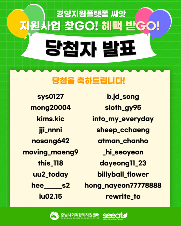 당첨자분들께는 별도로 개별 안내를 드릴 예정입니다.
