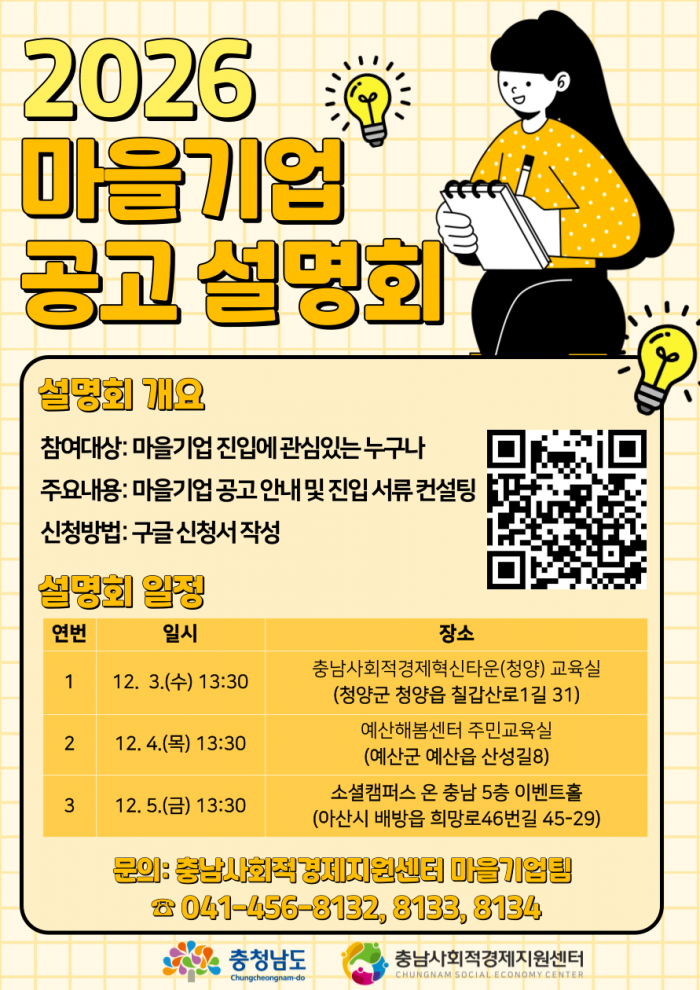 마을기업 진입에 관심있는 개인, 단체, 법인의 많은 관심과 참여 부탁드립니다.