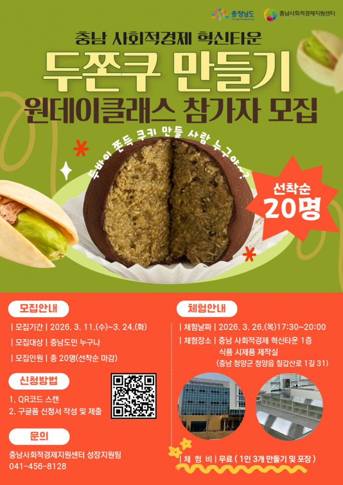 ★ 충남사회적경제혁신타운 「두쫀쿠 만들기 원데이클래스」참가자 모집 ★